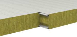 Self-supporting metal faced panel insulated with mineral wool. The fixing elements are exposed. The internal sheet is characterized by a micro-drilling that enhances acoustic performances; meaning the sound absorption and insulation.